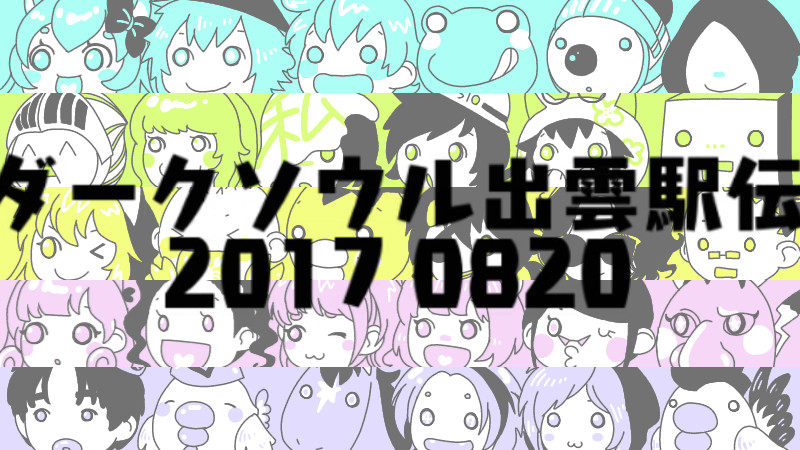 2017年8月20日にニコニコ生放送で行われたクロノさん主催「ダークソウル出雲駅伝2017」のチーム別全走者のイラストです。