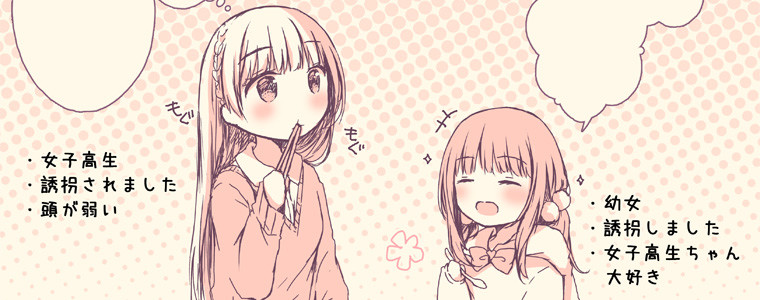 幼女が(頭の弱い)女子高生を自分のお家に隠しちゃう、ゆるいお話です。