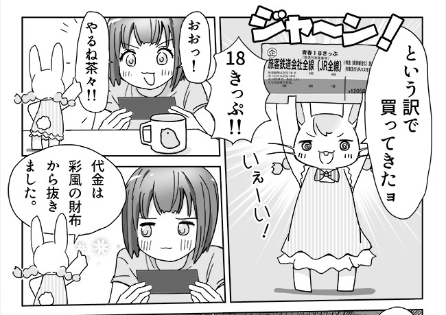彩風さんと、茶毛うさぎのぬいぐるみ茶々が旅をするお話。