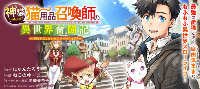 神様の眷属・子猫のミーちゃんを助け、異世界転生することになった青年ネロ。だけど、懐いたミーちゃんも異世界に付いてきた!? しかも神様からもらったスキルは「猫用品」を召喚する謎のスキルに変更されて――!? 可愛くて最強なミーちゃんとゆく、のんびりもふもふ異世界紀行、開幕!