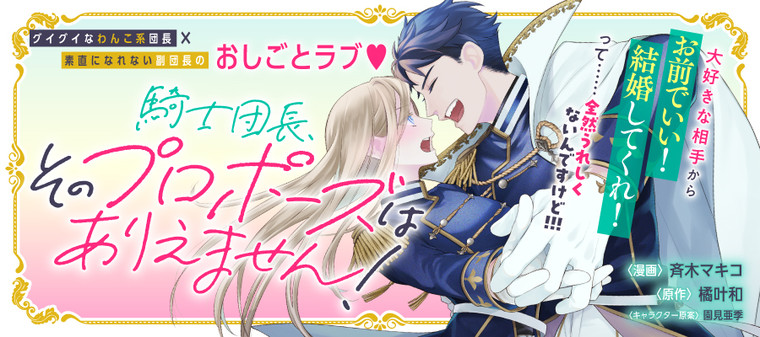 モンスターを討伐する遊撃騎士団に所属するケイトは、魔法騎士としての類いまれなる才と頭脳明晰さで若くして副団長を務めるが、主な業務は戦闘となると暴走しがちな団長・ネッドの手綱役。それでも尊敬できるところもあるネッドの元で日々業務に励んでいたが、ある日の打ち上げで酔ったネッドに突然「この際だ、お前でいい!」とありえないプロポーズをされて、思わずジョッキで殴ってしまい!?