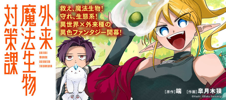 外来魔法生物対策課のロクロクは、赴任してきたばかりのニニンと外来魔法生物の調査を進めていた。元気いっぱいエルフっ娘・ニニンにロクロクはたじたじだが…?スライム、カーバンクル、ガーゴイル…さまざまな魔法生物を救うべく外来魔法生物対策課は今日もゆく!!!