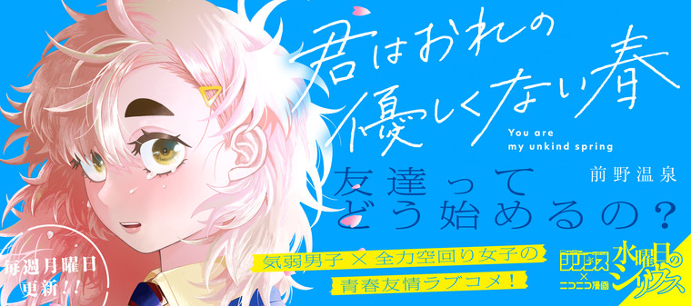 身長192センチ、顔に傷を持ち周りから「怖い人」だと勘違いされる氏岡佐の今までの学生生活は寂しい日々だった。高校入学の日、友達をつくって楽しい高校生活にしようと意気込む氏岡の前に、バナナの皮で転ぶ下星崎小鶴との衝撃的な出会いが待っていた! とんでもなく空回っちゃうけど、氏岡を見た目で判断しない、一生懸命に頑張る下星崎に心を打たれた氏岡は、友達になることに!? 友達も青春も初心者だけど、二人で青春、頑張るぞ!!