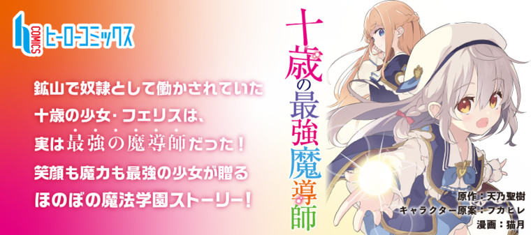 十歳の少女フェリスは、魔石鉱山で働く奴隷。あるとき、魔石鉱山が正体不明の魔術師たちに破壊され、フェリスは一人だけ生き残る。逃げ出した先で怪しい連中に誘拐されそうになっていた美しい少女アリシアを、フェリスは無我夢中で救出する。その御礼にアリシアの屋敷に招待されたフェリスは、そこで魔法の才能を見出されて──。笑顔も魔力も最強の十歳の少女が贈る、ほのぼの魔法学園ストーリー!
