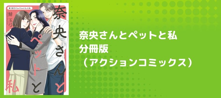 「奈央さんとイケメン“ペット”と私の不思議な三角関係――」。最近、彼氏と別れた衣笠さやか(26)は一人呑みにハマっているが、飲み屋で知り合った女性が、同じ会社の経理部の赤瀬奈央(28)だと知って驚く。会社で髪をひっつめ黒ブチ眼鏡をかけ無表情に仕事をこなす奈央と、気さくでとても華がある美人の奈央が同一人物には見えなかったからだ。呑み仲間となった二人だが、昼と夜ではギャップがありすぎる奈央にさやかはすっかりハマってしまう。その気持ちが友情以上のものになってしまい戸惑うが…奈央も同じように想ってくれていることを知り…晴れてふたりは付き合うことに!? そしてペットを飼っているという奈央の家でさやかが目撃した“動物”はどう見ても人間のオスの形をしていて!?