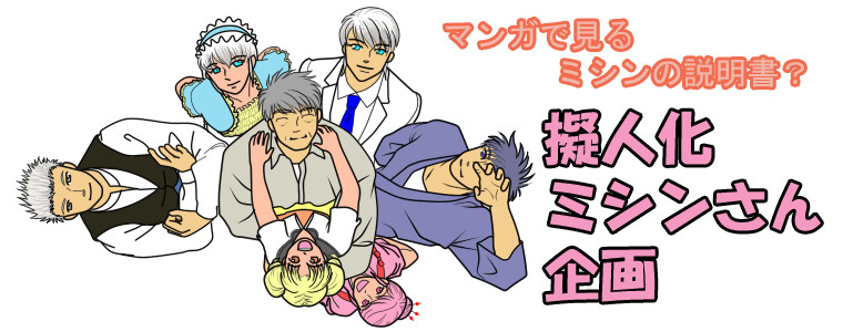 この漫画に出てくるキャラクターは、Twitter上で始まった「擬人化ミシンさんが貴方にあったミシンを紹介してくれる動画を作ろう!」という企画のキャラクター達です。 擬人化ミシンさんについて詳しく知りたい方はこちら