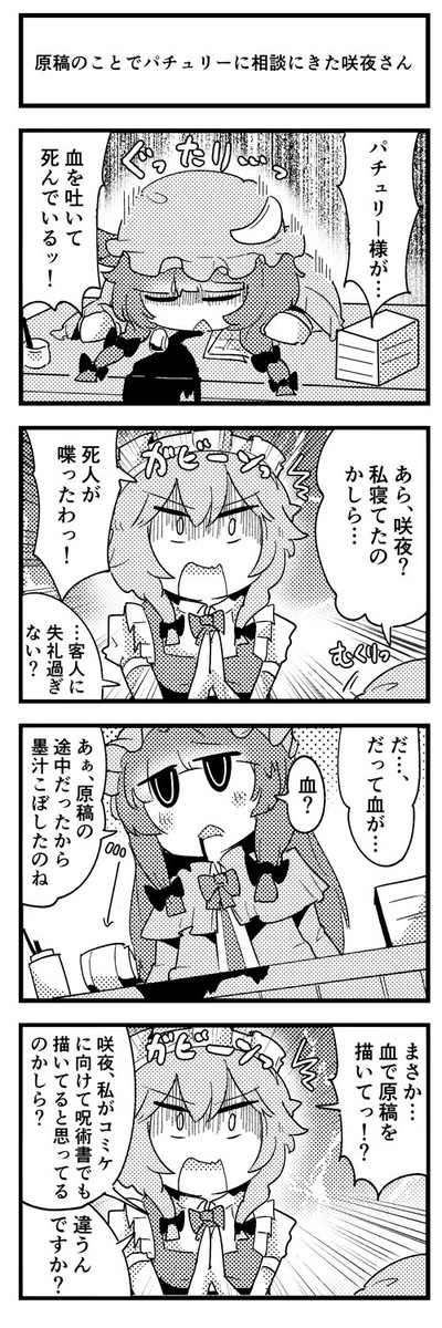 原稿のことでパチュリーに相談に来た咲夜さん