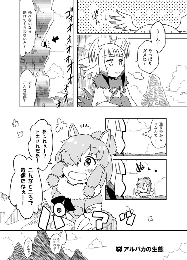 足腰の強いアルパカさんと、フレンズの体に慣れ切っていないト…