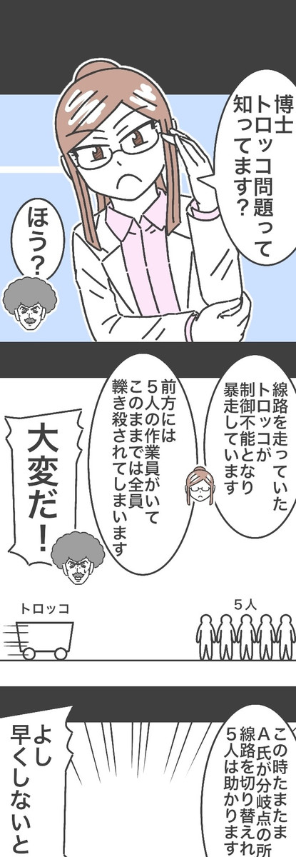 トロッコ問題※縦読み推奨(ここまで)   アフロ博士の思考実験