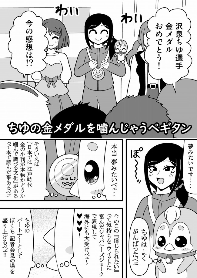 ちゆが獲得した金メダルを噛んでしまった人権意識の低いペギタ…