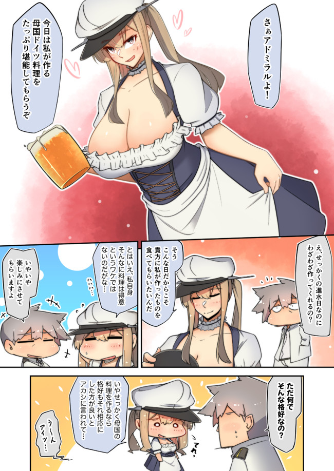 明石「グラーフさんのサイズに合う服を用意するの大変だったん…