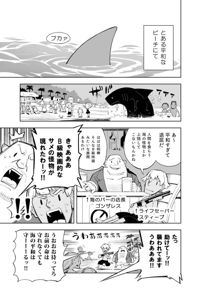 数年前に描いたオムニバス形式のギャグ漫画の一編。 B級映画的…