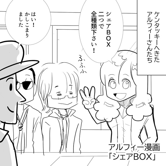 【THEALFEE】『ケンタッキーフライドチキンKFCのCMで話題沸騰中!アルフィーさんがシェアBOXを買いに行く漫画』アルフィー漫画イラストマンガ