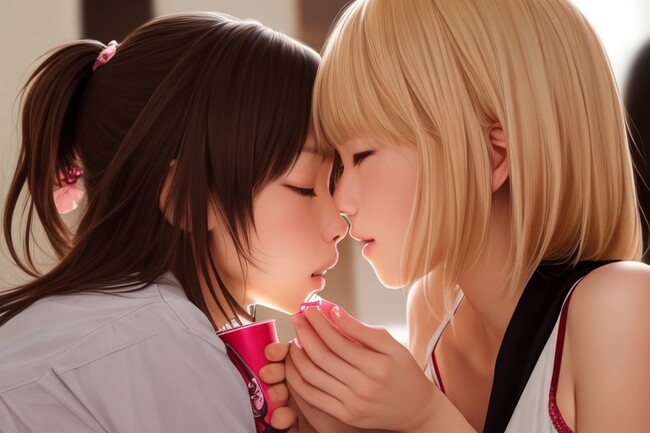 変装が得意なかわいい彼女と添い寝していくAI画像の漫画