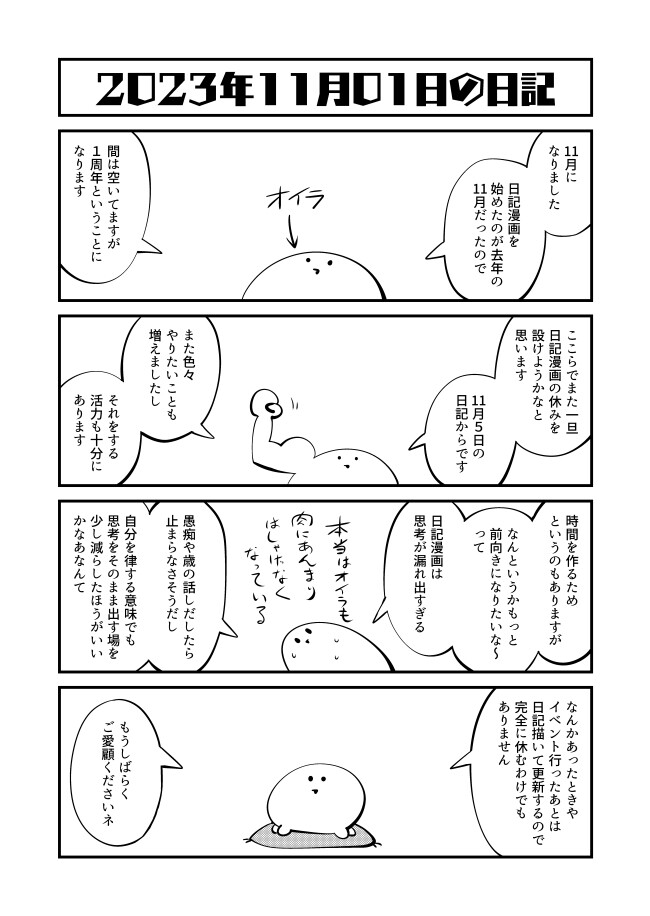 2023年11月1日の日記「休むぞ」