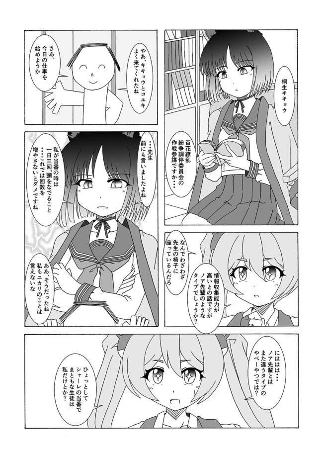 ブルアカ漫画⑮ シャーレの当番になったキキョウとコユキの漫画