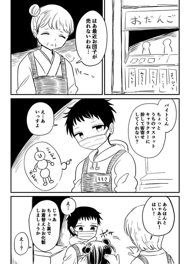 おだんご屋の看板娘になったバイトくん