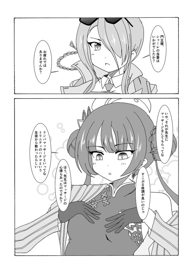 ブルアカ漫画㉕ シャーレでマッサージを受けたキサキとミナの漫画
