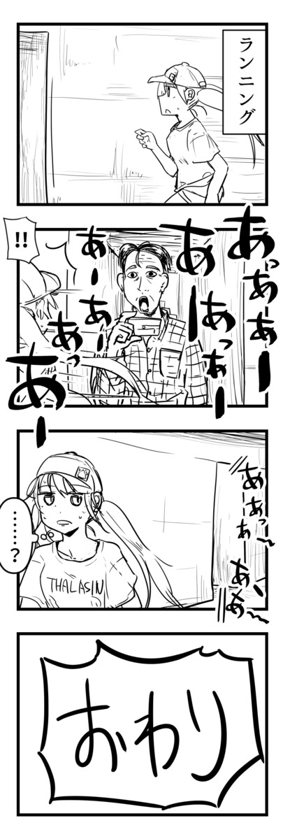 自分がツインテールのかわいい女の子だと思いこんで、今日の出来事を4コマにする。7