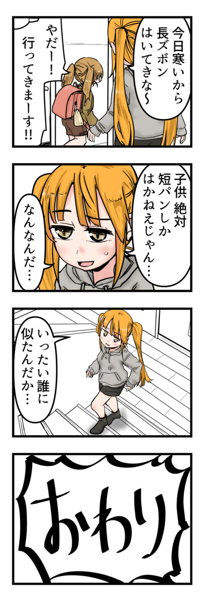 自分がツインテールのかわいい女の子だと思いこんで、今日の出来事を4コマにする。8